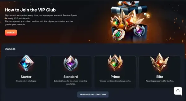 Azoknak a játékosoknak, akik a legmagasabb szintű kiszolgálást keresik, csak meghívásos VIP Clubot is működtetünk. Itt a nagy volumenű játékosok a fiókelőzmények és a felelős játék ellenőrzései alapján személyre szabott promóciókat és egyéni segítséget kaphatnak.